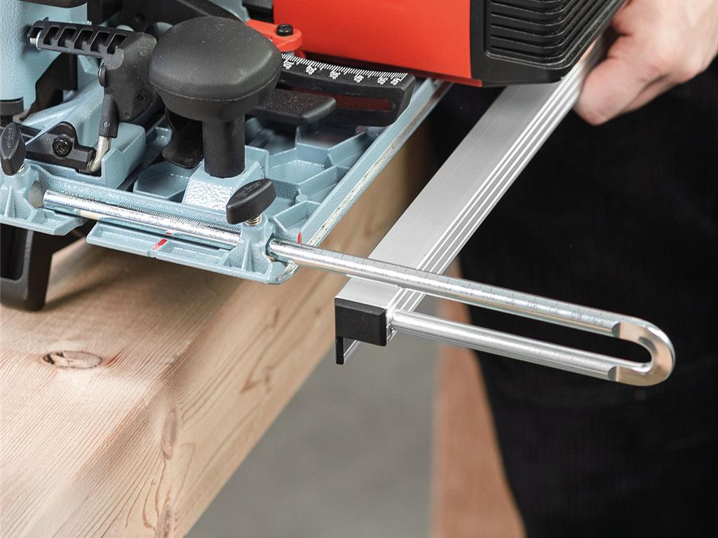 Za delo blizu roba je na voljo spodnje vodilo K 105-UA. Razdaljo je mogoče nastaviti s pomočjo skale na nosilcu.